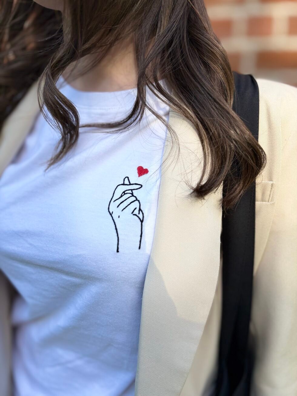Unisex stiliaus medvilniniai marškinėliai – patogūs, minkšti ir universaliai pritaikomi tiek vyrams, tiek moterims. Kiekvienas marškinėlis siuvinėtas rankomis, todėl yra išskirtinis ir kupinas jaukumo. Rinktis galite klasikinę juodą arba baltą spalvą – abi puikiai dera prie kasdienės aprangos ir leidžia sukurti individualų stilių.